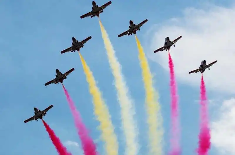 Este año, el desfile también se destacó por la ausencia de la Patrulla Águila, que ha sido un símbolo del evento durante 40 años. En su lugar, la Formación Mirlo realizó un sobrevuelo inaugural con aviones Pilatus PC-21, que dejaron huellas de humo tricolor en el cielo, simulando la bandera nacional. Este cambio ha sido interpretado como un paso hacia la modernización de las capacidades aéreas del ejército español, así como una forma de rendir homenaje a la historia de la aviación militar en España.